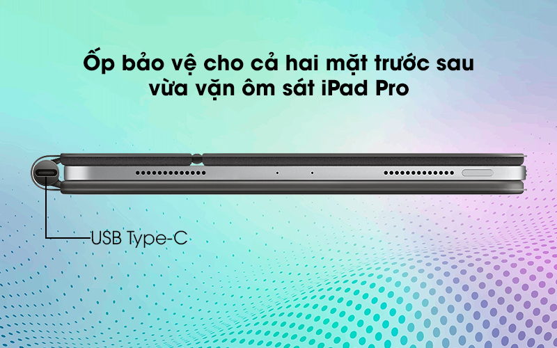 Magic Keyboard cho iPad Pro 11 inch (M4) còn được trang bị cổng Type-C tiện lợi, hỗ trợ sạc cho iPad Pro