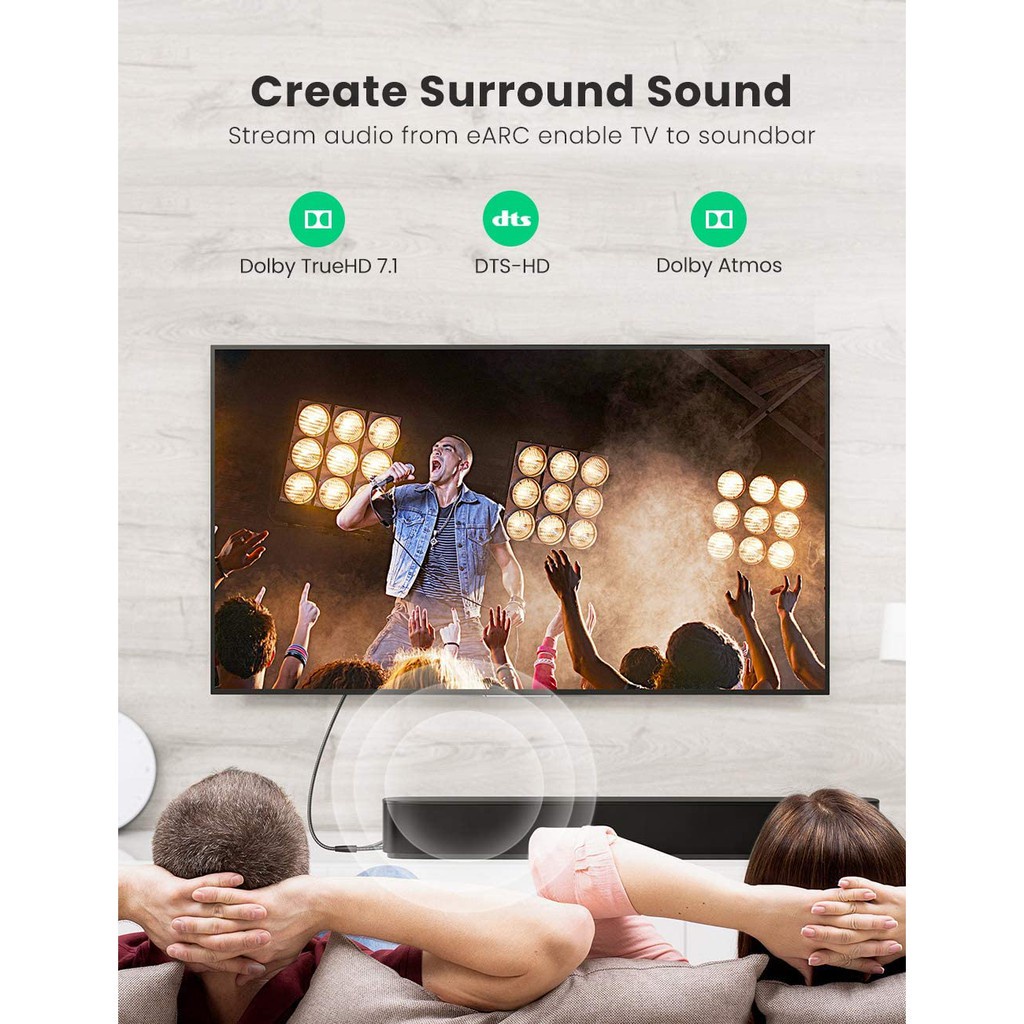 Kênh trả âm thanh eARC hỗ trợ các định dạng âm thanh tiên tiến nhất với chất lượng âm thanh tốt nhất, như True Dolby HD 7.1, Dolby Digital Plus, Dolby Vision, Dolby Atmos, DVD-Audio, v.v.