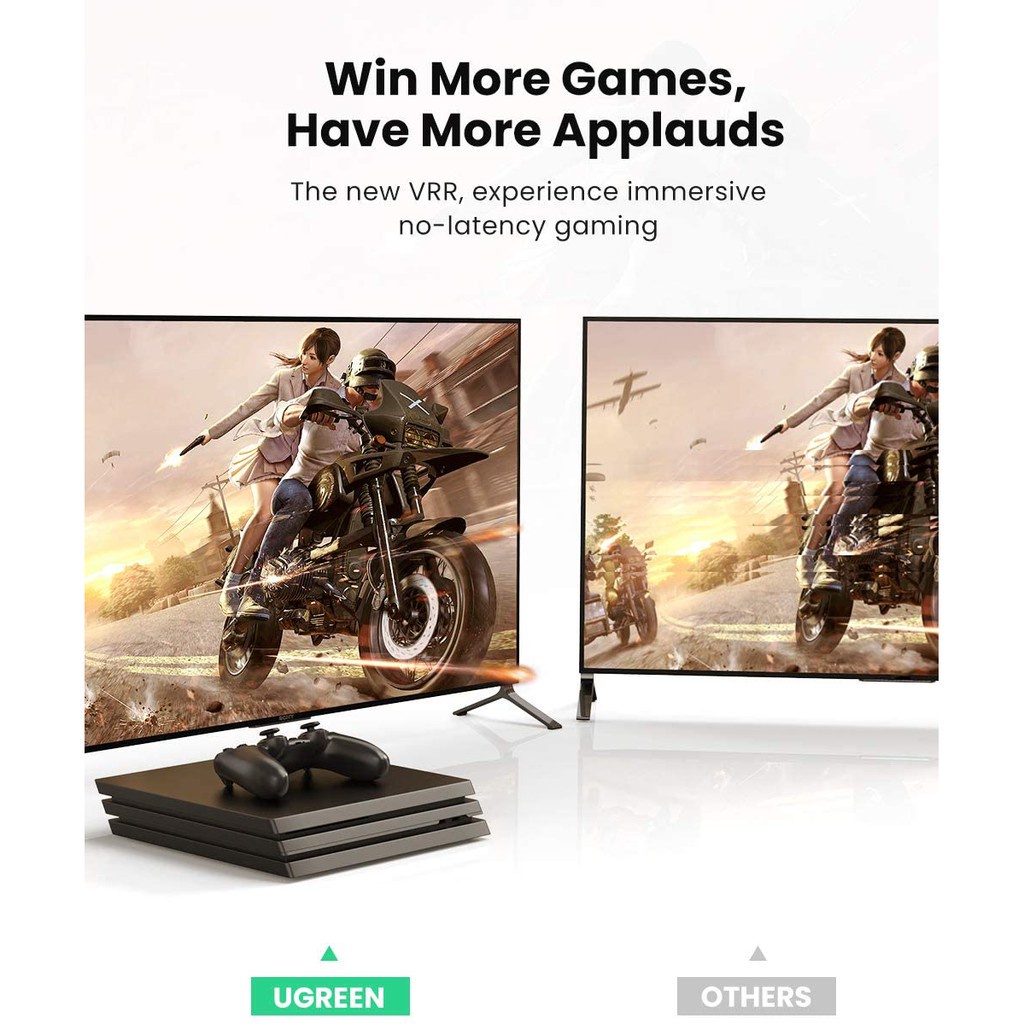 So với cáp HDMI 4K thông thường, HDMI 8K Ugreen 80402 được cải thiện giúp các chuyển động và các đoạn phân cảnh mượt mà hơn trên cả game và phim ảnh. Bao gồm: