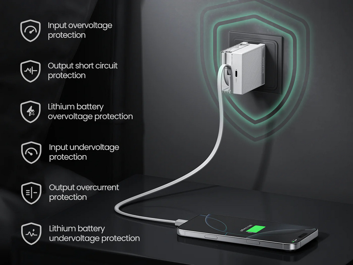 Nhỏ gọn hơn 40% so với củ sạc 65W thông thường, tiết kiệm không gian mà không ảnh hưởng đến hiệu suất.