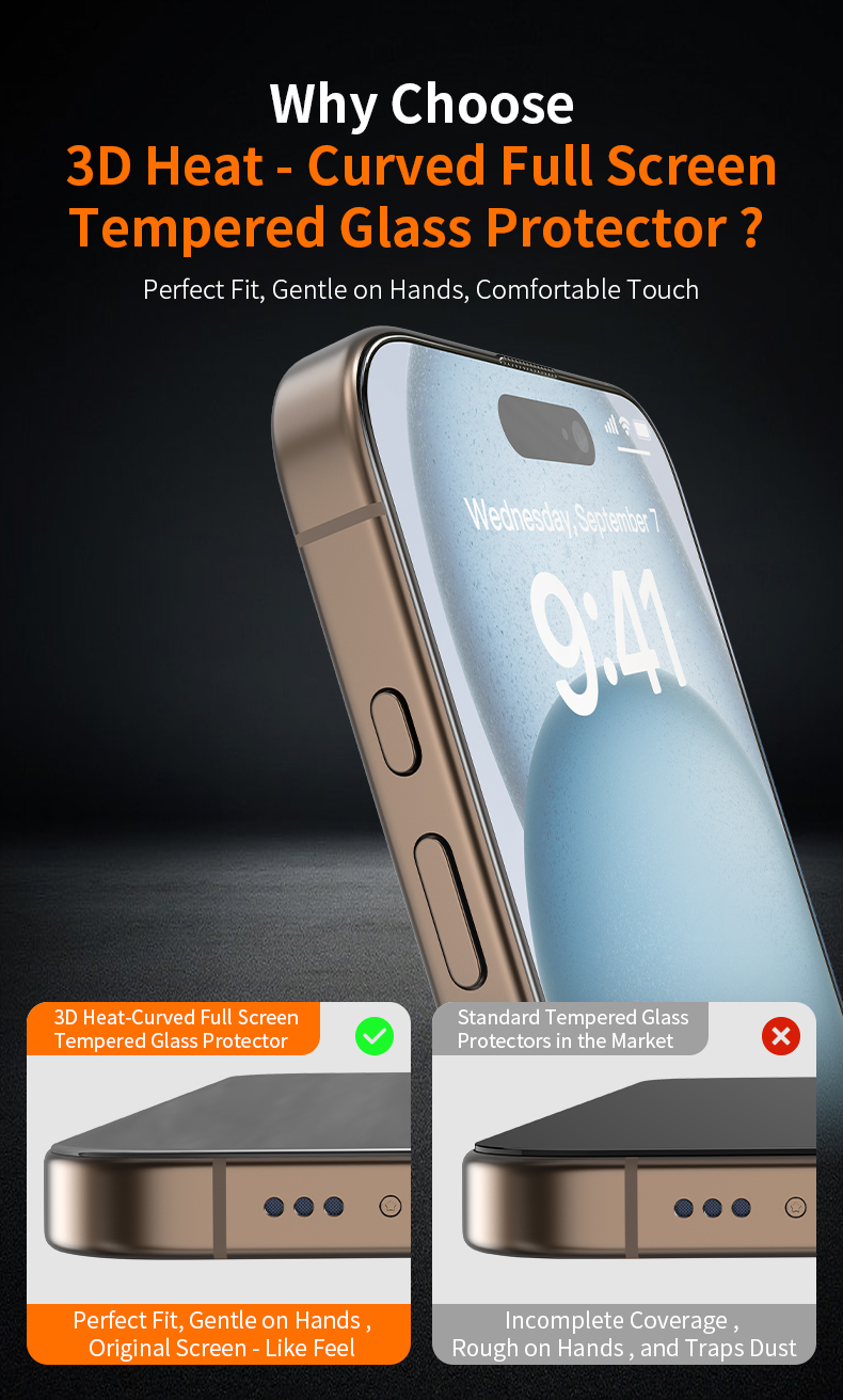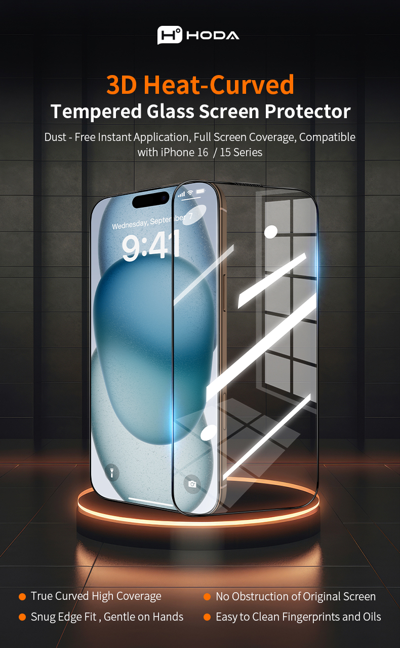 Miếng dán cường lực HODA 3D trong suốt có viền đen cho iPhone 16 Series