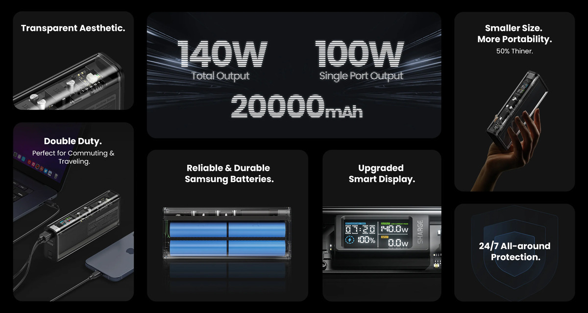 Pin sạc dự phòng Shargeek 140W 20000mAh - Slim Gen 2