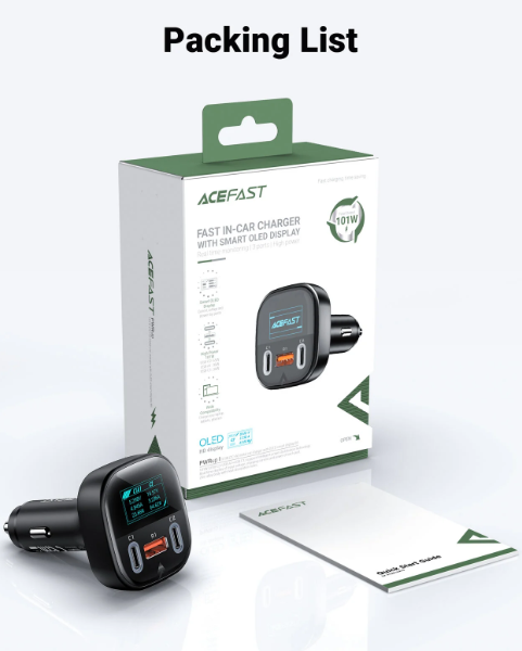 Sạc ô tô ACEFAST 101W 3 Cổng Có Màn Hình LED Hiển Thị - B5